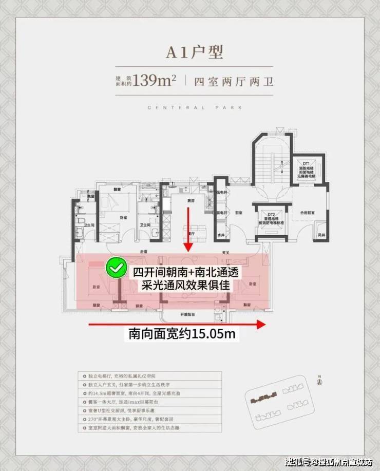 亮点一:经典四开间朝南+大横厅设计,超绝采光户型!