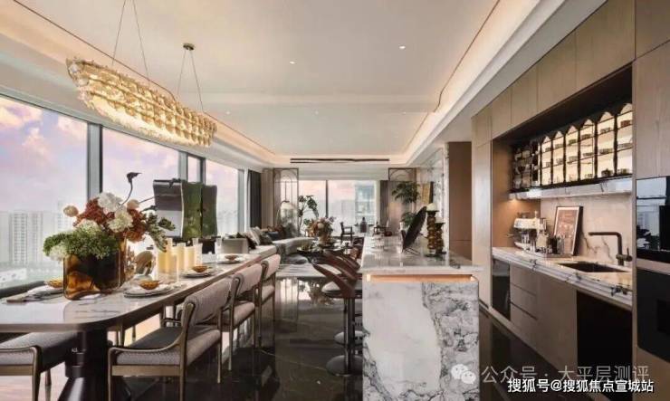 面积超70㎡的转角三连厅+岛台,