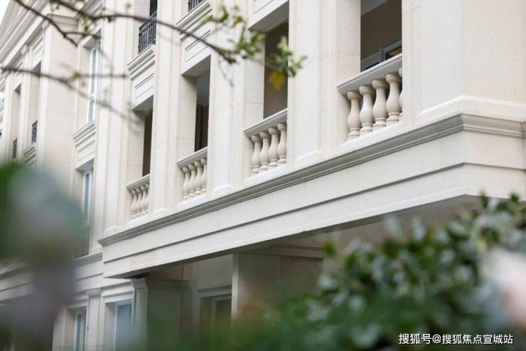 建筑风格:采用纯正法式风格,外立面选用白麻干挂石材,运用法式廊柱、雕花、线条等经典元素,搭配对称造型与孟莎式斜坡屋顶、宝瓶栏杆等细节设计。