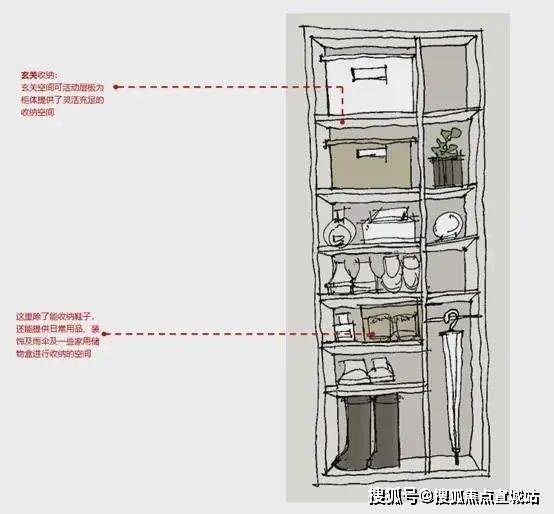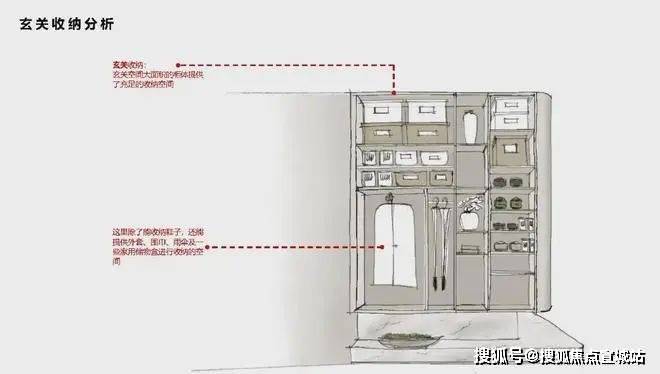 玄关处增加一个储藏室,旁边的南向次卧中,还有一间家政间,扩大家里收纳空间;