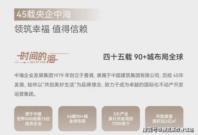 中海企业发展集团1979年创立于香港,隶属于中国建筑集团有限公司,历经45年发展,始终以“共创美好生活”为品牌理念,致力于成为卓越的国际化不动产开发运营集团。