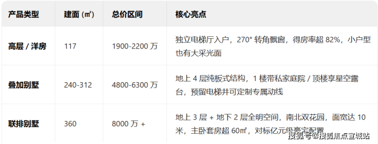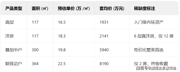 ②建面约240-312㎡叠加别墅:预估均价:19.8-20.3万/㎡,总价控制在4800-6300万之间;