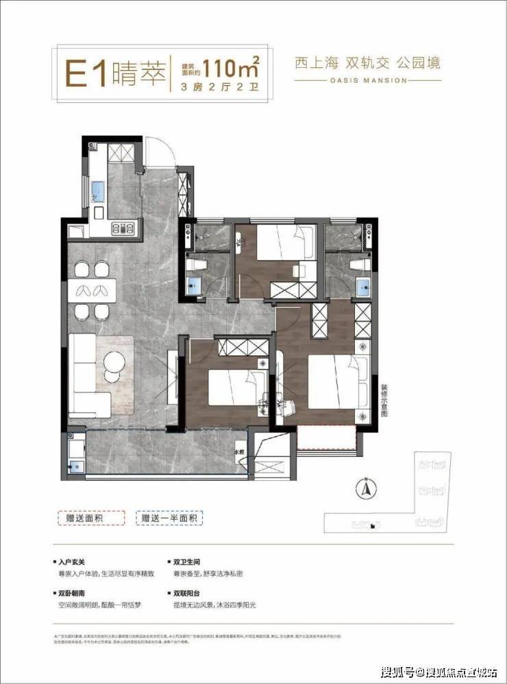 户型设计:主力户型80-110㎡,得房率75%-76%,全明格局设计,精装交付含中央空调及新风系统。