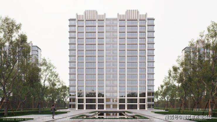 建筑与美学:融贯东方审美与现代简约的立面美学,立面采用精致铝线条(局部涂料)与现代质感玻璃打造,勾勒优雅轻盈的城市封面