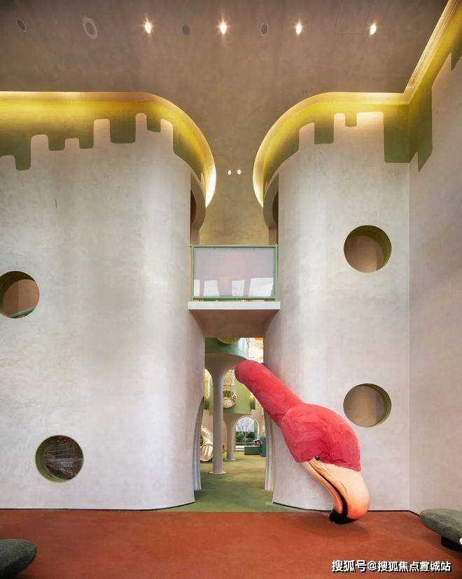 比如:考虑到之江这边的客群,家里大多都有即将或者正在上学的孩子,所以知海棠直接舍弃了一套可售房源来做超大童玩空间。整体面积超过480平米,还考虑不同年龄阶段孩童的需求来做规划,有大一点孩子更适合的树屋、滑滑梯;有更小一点孩子更需要的“四点半学堂”等等......甚至就连这块区域的“绿色”的主色系,地面的塑胶板材都是团队提前反复考量的。