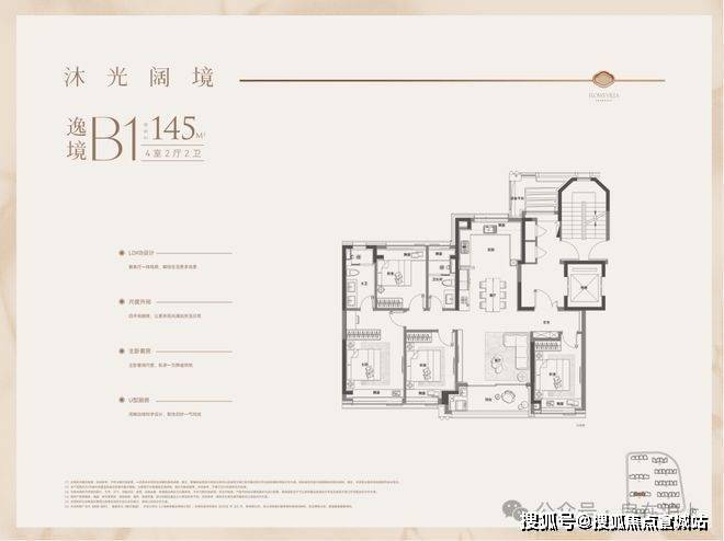 绿城逸庐售楼处电话400-885-1337户型特 点:4开 间朝南,LDK一体化设计,南北通透。客厅面宽达4.3米,外接4.8米长阳台,采光通风俱佳。主卧带270°转角飘窗,主卫也有飘窗赠送。全屋飘窗设计,独立电梯厅,私密性与尊享感强。