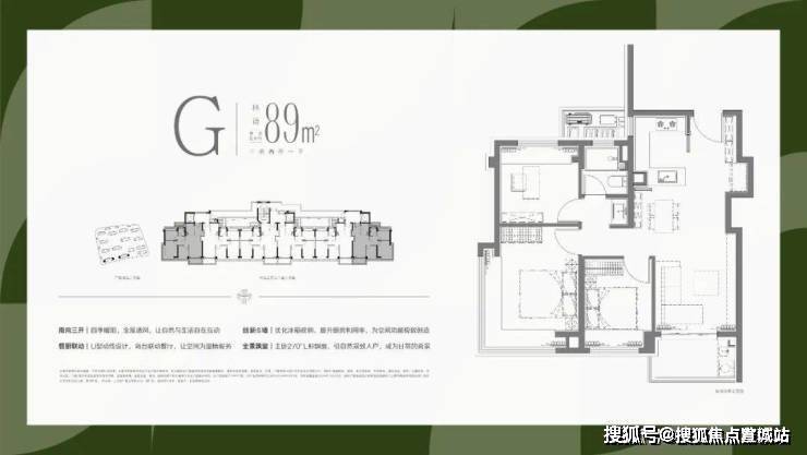 89㎡三房两卫:南向大面宽、动静分离设计,95㎡级实用空间,小户型也有独立家政区;
