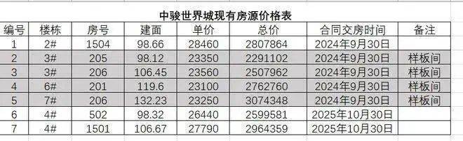 在售户型:有建面 101㎡和 111㎡的 3 居室,均为平层结构,户型朝南,分布于 2#、3# 楼。