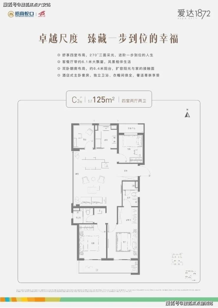 **建面约125㎡**:270°三面采光,双卧朝南+奢阔客餐厅,一步到位改善需求。