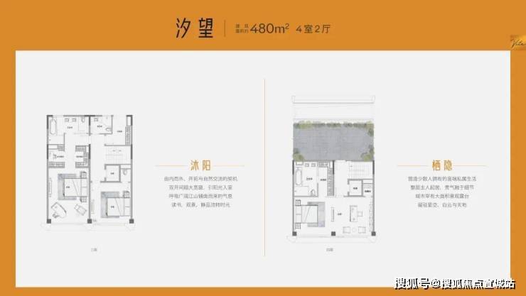 大平层:面积范围为 199-328 平方米,层高 3.6 米,全套房设计。