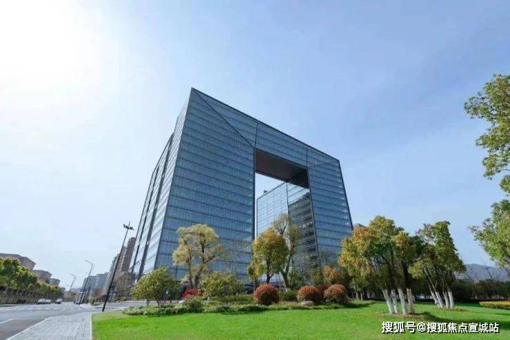 建筑设计:建筑立面采用干挂米色石材搭配大面积玻璃幕墙,造型灵感来源于建筑大师贝聿铭的宅邸,呈现极简英伦风格。U 形玻璃幕墙布局形成 “门洞” 造型,每三层设置空中景观平台,可无遮挡观赏钱塘江景。