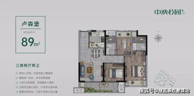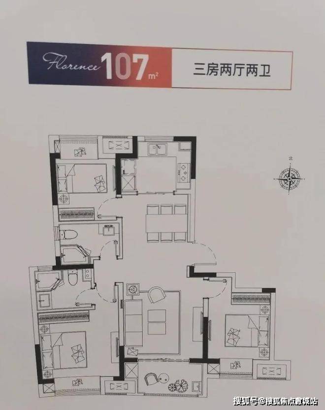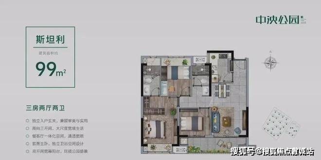 101平-3-2-2,17幢东边户一梯两户,仅剩十余套房源,优质楼层可选性不高。成品三房两卫,户型如下,总价210万左右