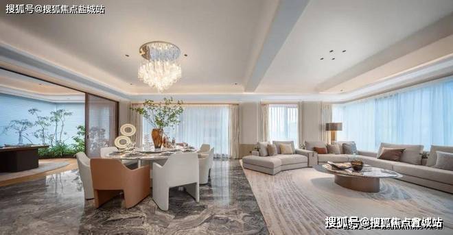 杭州凤咏朝阳售楼处电话☎:400-8828-814(售楼处预约看房热线)餐厅与客厅空间相贯连,开阔的视野带来惬意与更具互动感的用餐氛围。法国餐具品牌Christofle的精巧工艺与大理石水墨画般的自然纹理交相叠映,镜面光泽,熠熠生辉,每一处细节都彰显着对品质生活的极致追求。