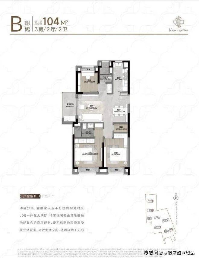 此外,还具有独立储藏间,非常难得。该户型比较适合三口之家或三代同堂居住。