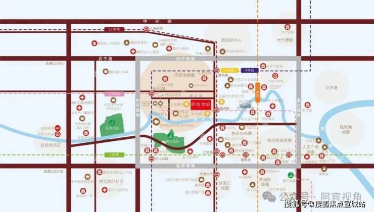 500米苏河水岸休闲带,西宫,1.5公里中山公园,2公里可达普陀公园、曹杨公园、长风公园,2.5公里长风海洋世界。