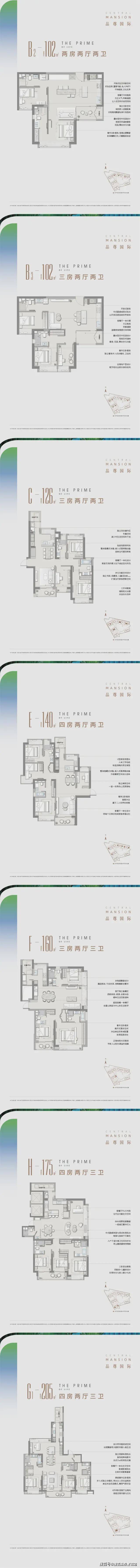主力户型:建面约 102-205㎡的两房至四房,包括约 102㎡的两房两厅两卫和三房两厅两卫、约 126㎡的三房两厅两卫、约 140㎡的四房两厅两卫、约 160㎡的三房两厅三卫、约 175㎡的四房两厅三卫、约 205㎡的四房两厅三卫。