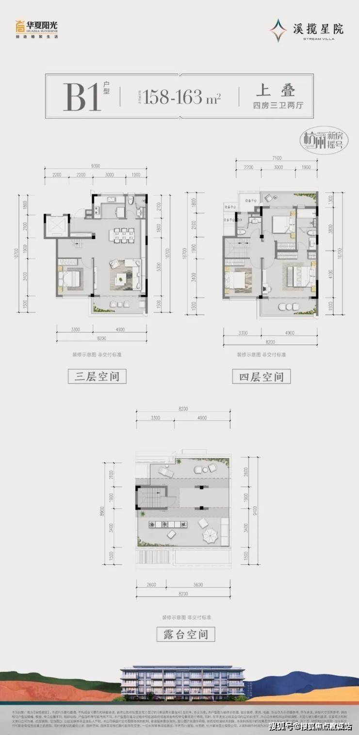 B1户型上叠:顶层景观阳台/餐客一体连厅/套房式主卧/舒奢三卫设计