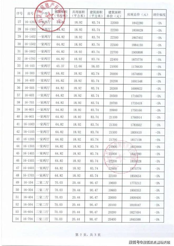 项目一房一价表