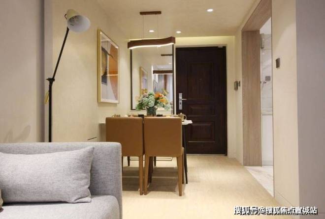 客厅面积约11.38㎡米,附带外凸式南阳台,入户门可设鞋柜,卫生间干湿分离。