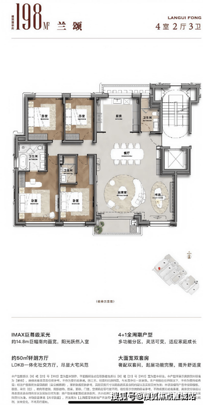 约170㎡户型,单价范围:11.22万– 12.19万/㎡,总价范围:1795万– 2066万。