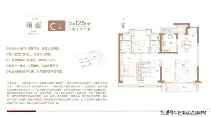 作为一个纯粹的改善型社区,虹桥璀璨领峯的主力户型为建面约105-125㎡三房,如此集中的面积段,不仅保证了社区内圈层的相对统一,对于后续社区的管理也是润物细无声.