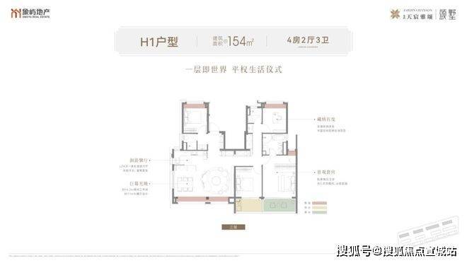 建面约154㎡中平层:约14.2米南向巨幕面宽,结合约7.1米奢阔横厅,塑造出开阔明亮的、兼具仪式感与舒适度的家族聚光主场。四间卧室科学布局,从容满足二胎家庭或三代同堂的居住需求。每间卧室皆享独立私密,让家人各安其境,和睦相融。南向双景阳台与露台,将郊野公园的四季风光引入室内,让自然成为日常生活的背景。