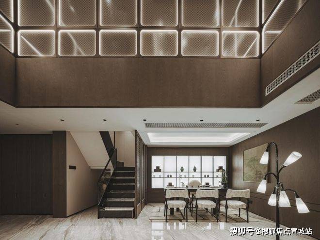 建面约153㎡下叠:约7.1米“洄游聚厅”打破传统空间壁垒,餐客厨一体化设计重构家庭社交中心;北向全明长辈套房采用零台阶动线,细致呵护长者起居;约5.6米层高的地下室搭配下沉式采光天井,彻底颠覆了传统地下室的压抑感,可根据需求打造成私人会客厅、藏酒阁或禅意茶寮。