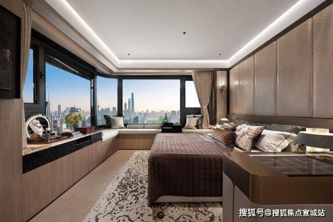 越秀·静安天玥项目142㎡主卧以270°大面宽弧形窗将百年静安与社区园林“双景致”收入囊中,且采用造价高出普通窗体40%的三玻两腔Low-e玻璃,噪音分贝降至28dB以下。当百年静安的光影在窗前流动,城市封面的印记愈加显著。
