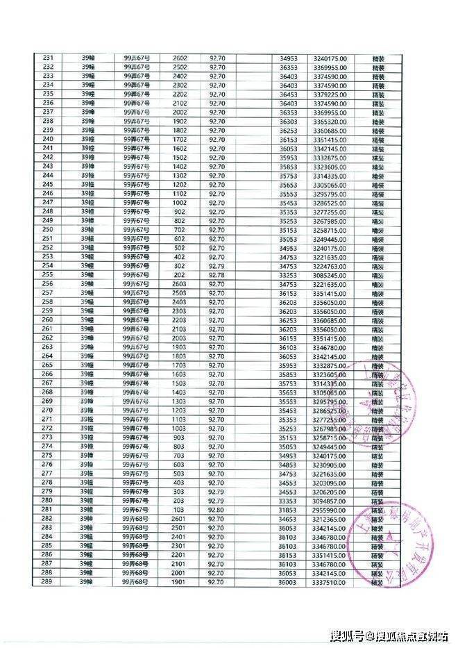 以下为项目最新一房一价表