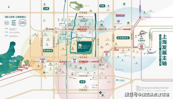 轨交17号线:项目距赵巷地铁站约2.3km,6站直达大虹桥交通枢纽