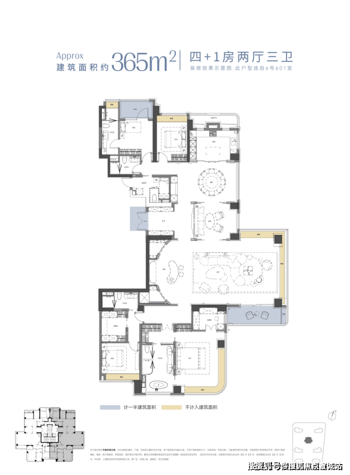 建面约365㎡4+1全景舱户型,更是将光与空间的融合做到了极致。全屋约60 米超长采光周长,以环幕级采光界面,让阳光成为空间的原生底色;约80㎡全景舱大方厅,无界贯通的空间格局,实现了家庭欢聚、圈层社交的全场景适配。三套独立全功能房设计,保障居住的私密性与尊崇感,完美适配多代同堂的家族居住需求,成为可世代传承的塔尖恒产。
