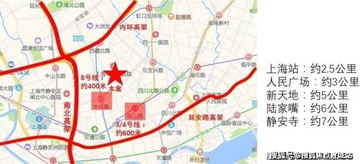 自驾:项目毗邻南北高架、内环高架,距离南北高架永兴路口仅500米,可快速到达苏河湾、人民广场、陆家嘴、静安寺等多个市级商圈,出行便利。