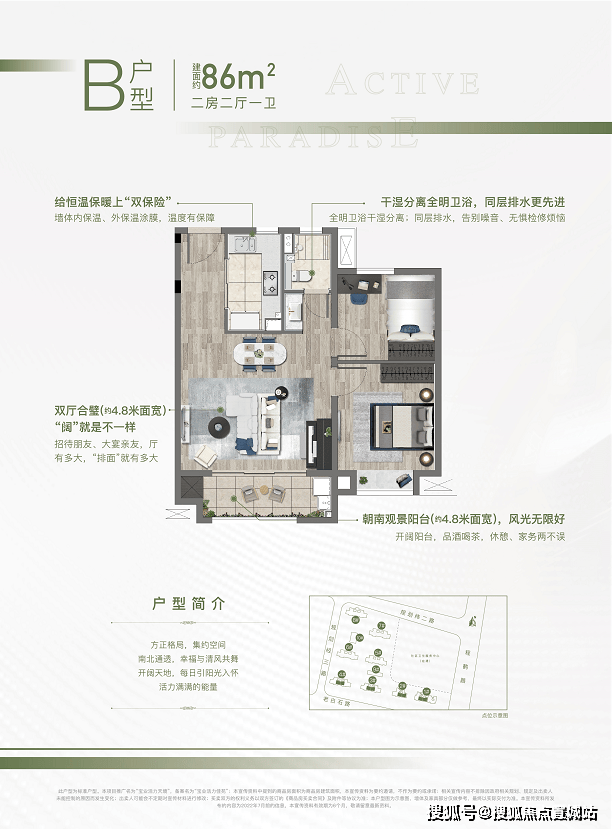 主力户型:建面约 85-96㎡的 2-3 房,其中 85-86㎡两房总价约 238 万起,95-96㎡三房总价约 269 万起。