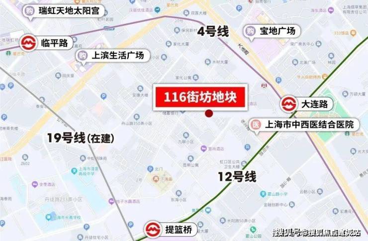 交通方面,项目位于上海内环内,距离轨交4号线大连路直线距离约250米,周边4、12以及在建19号线三轨交汇,交通便捷。