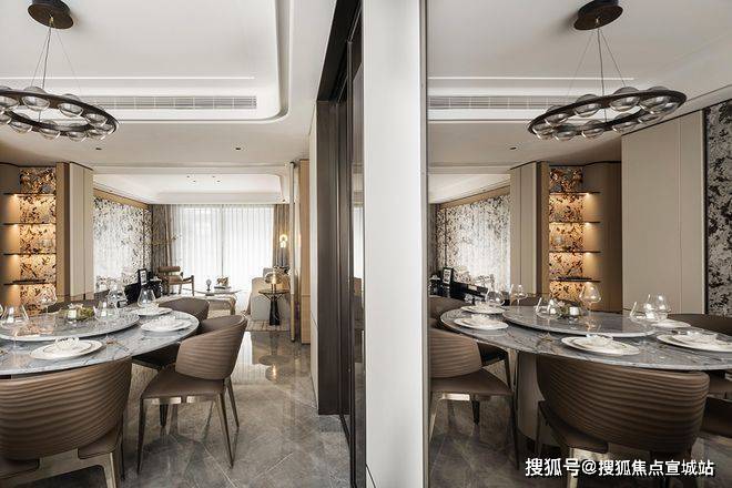 波光水影,往来豁然。玄关在方圆之间,提点生活的包容之态。