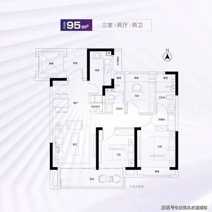 建面约95m²3房2厅2卫