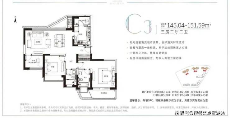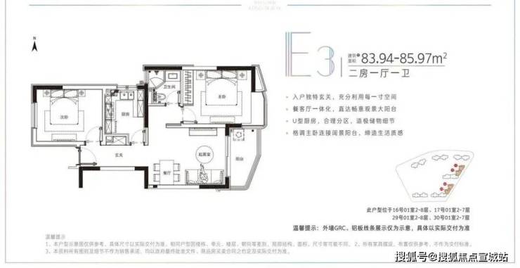建面约78-91.22平米的小户型,两房两厅一卫的格局,非常适合年轻刚需家庭上车。