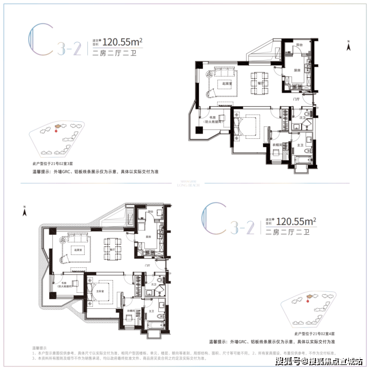 项目的百平户型,有别于其他项目百平米做三房的设计,其实每个房间都很难舒展开来。上海长滩不盲目追求房间数量,而是做了非常舒适的大两房格局,功能完备,拉伸生活的尺度感。
