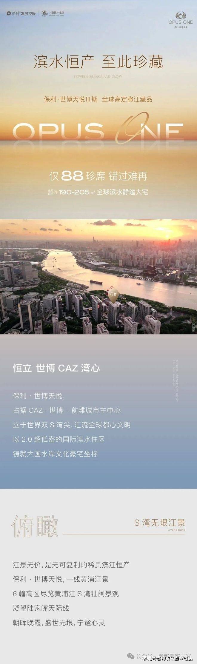 保利·世博天悦距江80米的滨江首排之位——3号楼「世峯」驭江登临,仅76席建面约240-252㎡全球滨水壹号座。建面约240㎡「天幕臻境」全新艺术高定焕新样板房于11月22日,启幕全球。