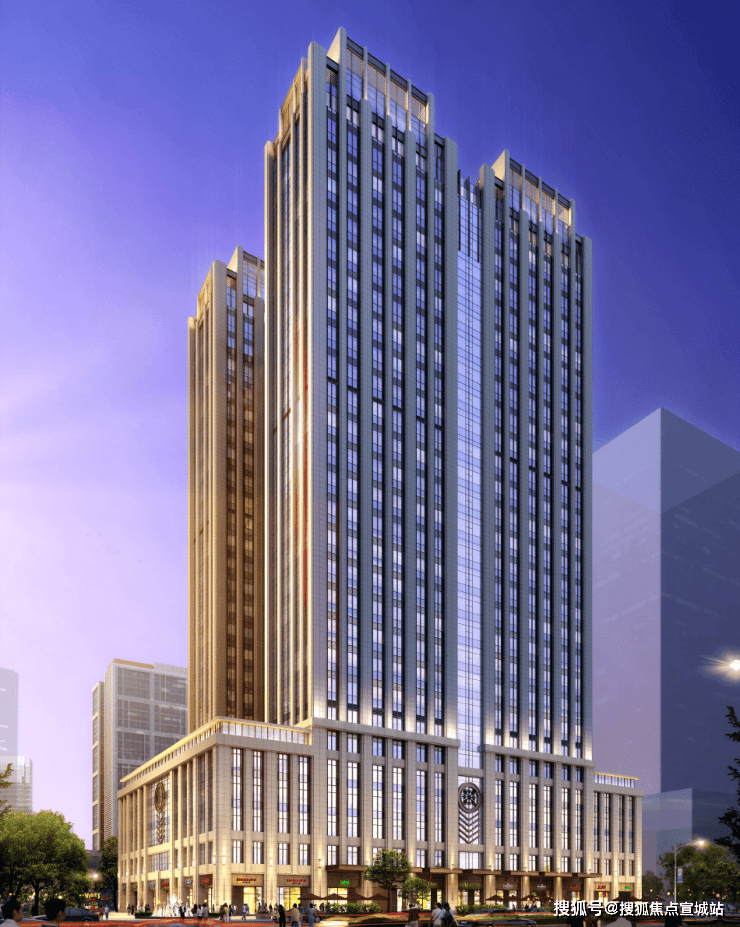 由知名设计师李少渠操刀设计,灵感来源于欧洲Art Deco风格,外立面采用进口巴西白玫瑰石材搭配玻璃幕墙,呈现简洁大气的现代感。