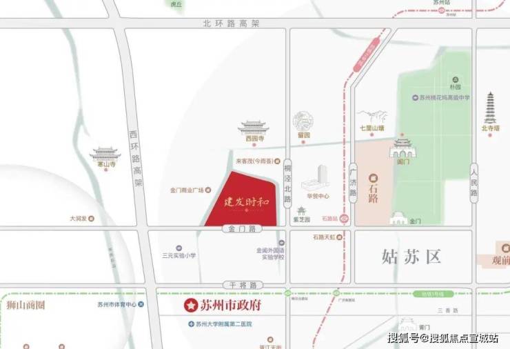 1)市府心:本案距离苏州市政府仅600米,姑苏区是苏州不折不扣的政治中心,包含苏州市政府办、财政局、住建局、市场监督局、审计局的40多个市级部门(单位)均落位姑苏区,其中市政府距离我们项目仅一公里,既是财富中心、又是政治中心,办事方便又迅速。