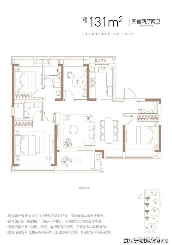 映翠府售楼处营销中心:400-8828-814映翠府售楼处电话/地址☎:400-882-8814(开发商热线)建面约131㎡4房2厅2卫,两梯两户设计,给足了业主归家仪式感和尊崇感,同时拥有一个尺度阔绰的入户门厅作为自己家的延伸!