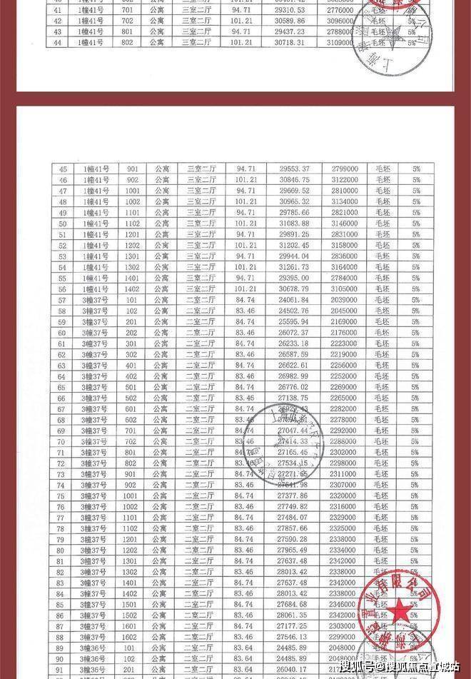 大名城映雨江南项目一房一价表: