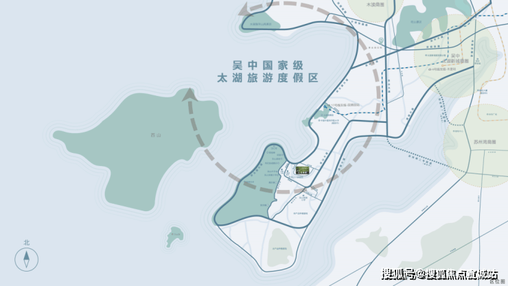 自驾:紧邻太湖大道、东山大道,30 分钟可达苏州湾、木渎商圈,苏州湾隧道规划中。