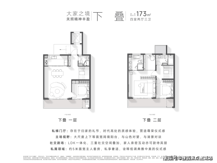 墅居体验:双电梯配置,归家的尊贵仪式感;大尺度景观阳台,打开生活的风景视野。