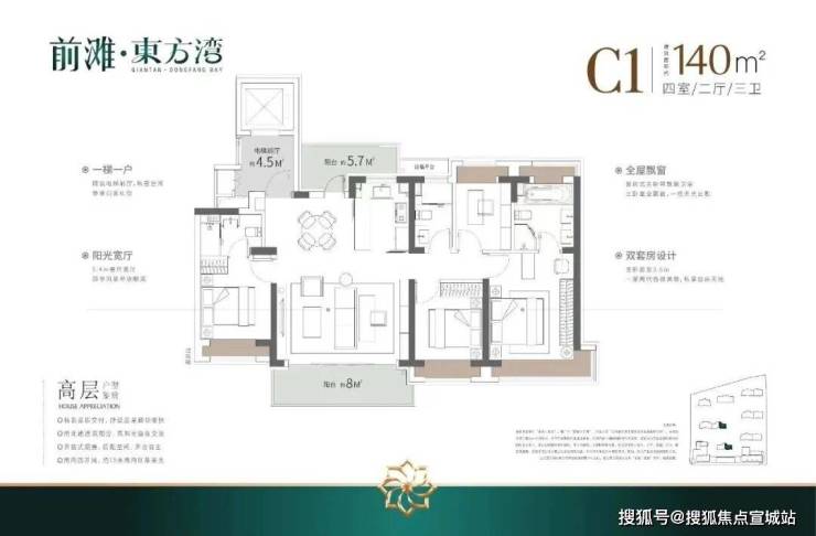 如果有进阶改善置业需求的客户,可以选择建面约140/175㎡4房2厅3卫!