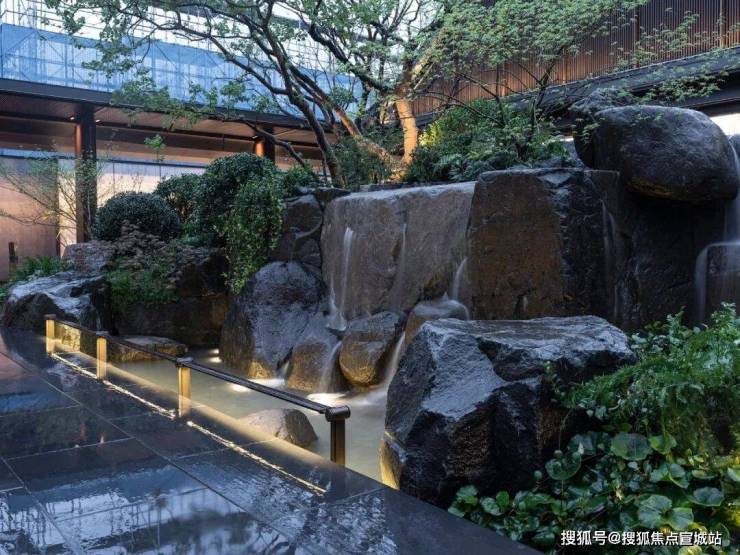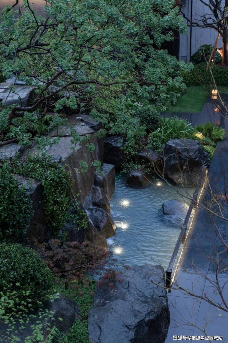 置一茶轩悬浮于石溪之上,水从底部石上流出,深郁的山坳间腾起云雾,弥漫浮动,吞吐变灭。山石自然参差,有沟涧、宽溪、石隙,水在其间流淌、跌落,激荡自然而然的山水清音。山苍树秀,水活石润,青山自青山,白云自白云,世事流淌人在其间,纷扰的尘嚣远去,喧嚣的声音荡尽,回归最原始的静寂的天地。