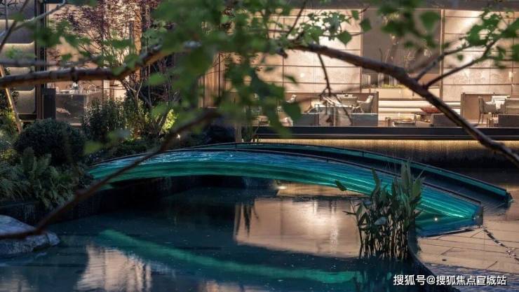 “闲上山来看野水,忽于水底见玉山”。瑶台之上架起一座官绿的桥,桥体犹如整块玉石打造,夜晚池水微澜灯光亮起,宛如翠玉浮于水面,又如玉带横跨瑶台。