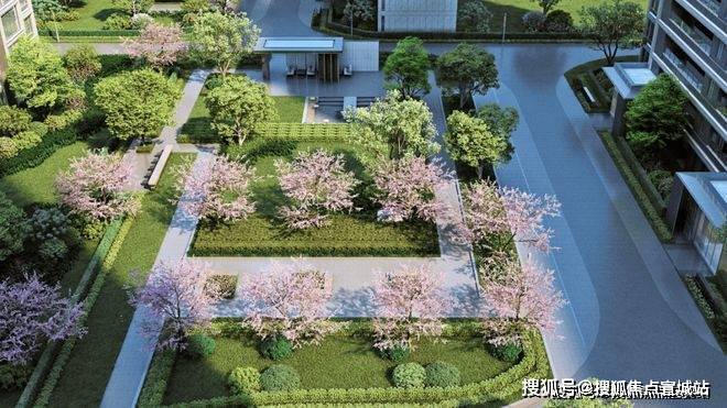 围绕“一轴·一心·四园”的景观设计理念 ,以中央花园和健康静谧的组团花园,通过现代主义建筑风格演绎,呈现充满运动活力和健康生活的公园式品质社区。