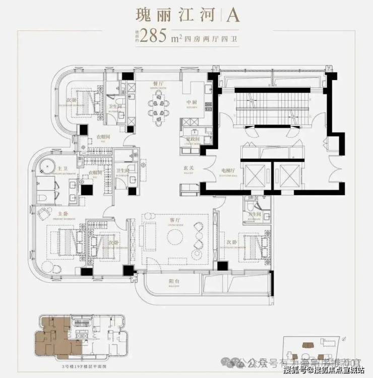 5、在285㎡的大面积下,户型设计合理,空间利用率优秀,几乎没有浪费,可以算是优秀的豪宅设计。